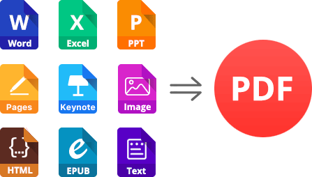Create PDF from 10+ file types: Word, Excel, PowerPoint, Pages, Keynote, Numbers, image, etc.