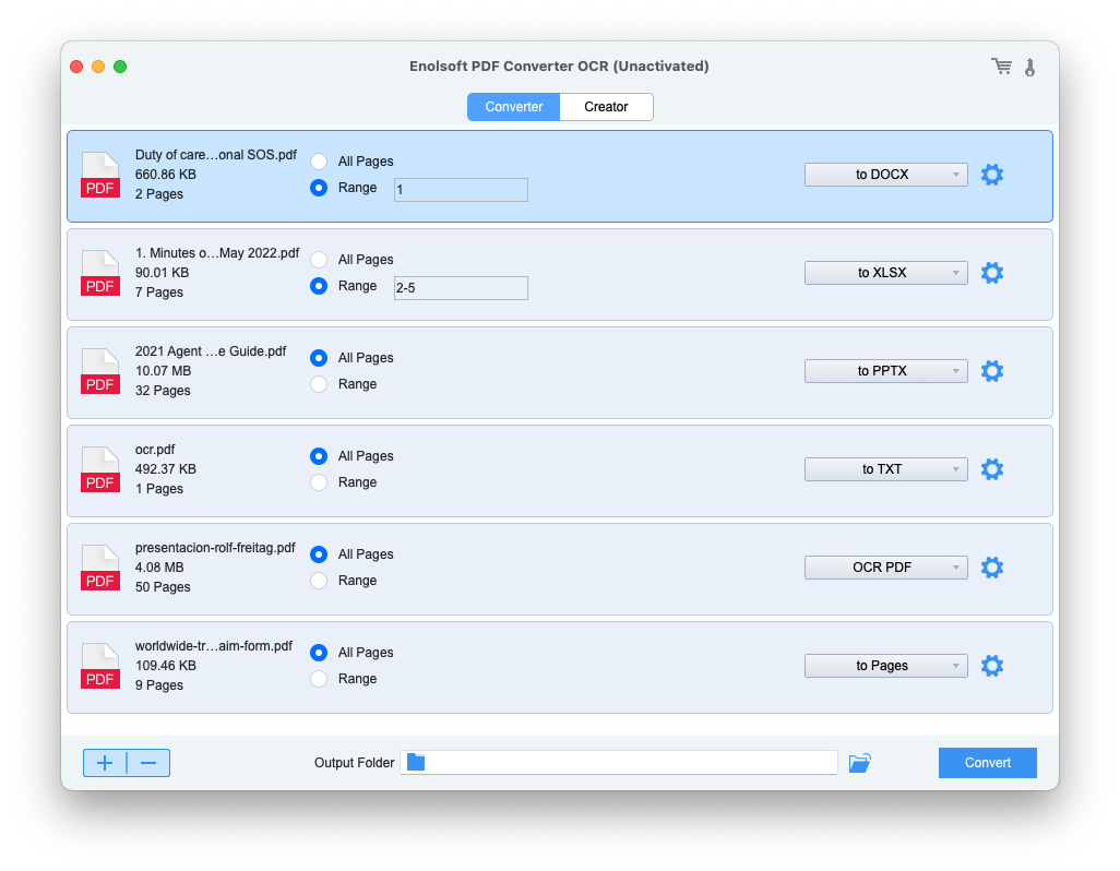 Enolsoft PDF Converter OCR can help you easily convert native and scanned PDF to Word, Excel, PPT, Keynote, Pages, HTML, EPUB, Text, Rtfd, images and etc. No matter you want to analyze data, report work to your boss, or have a meeting with your colleague, it can be your great partner.