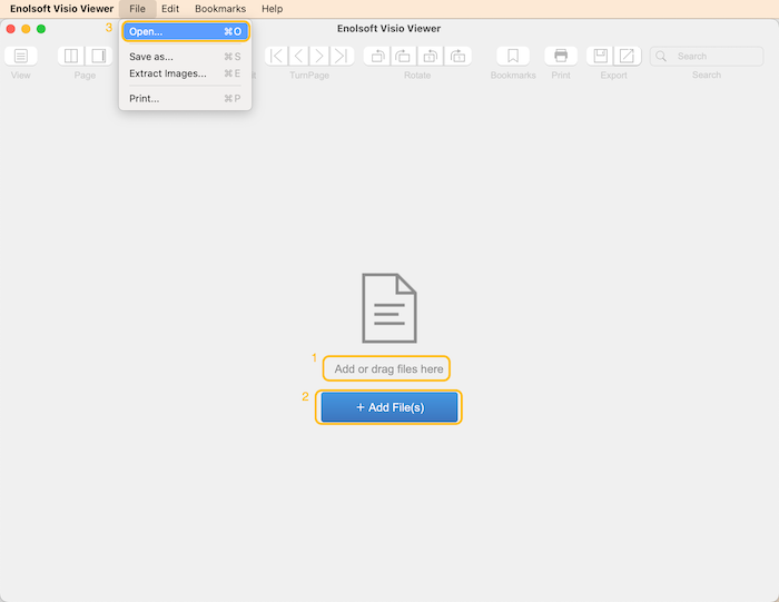 3. Click File> Open on the top menu bar or press shortcut keys CMD+O, and then choose the target Visio files to open.