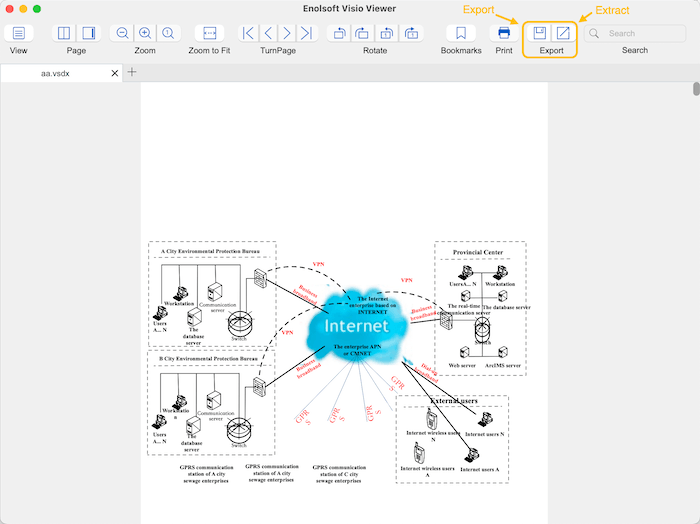 Enolsoft Visio Viewer supports exporting Visio files to PDF for easy sharing, it also supports extracting all images from Visio file in one click.