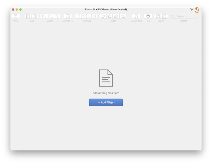 1. Go to Lauchpad or Applications folder, double click Enolsoft XPS Viewer to run the program, and then click the key icon at the top right corner.