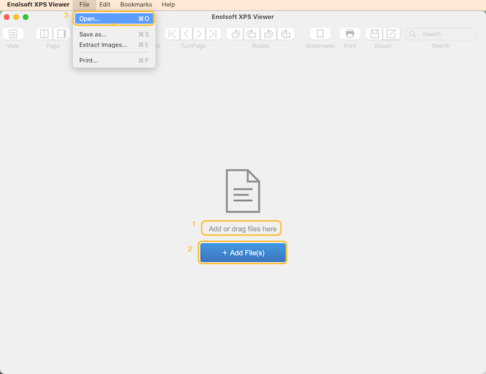 3. Click File> Open on the top menu bar or press shortcut keys CMD+O, and then choose the target XPS files to open.