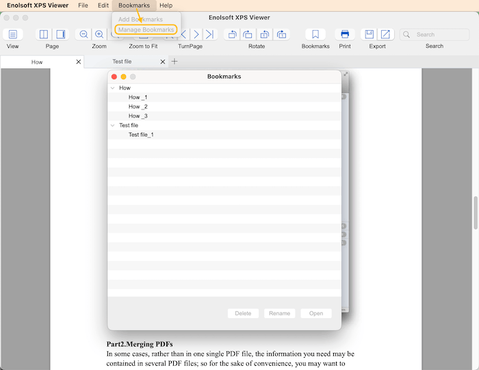 You can also add bookmarks to important pages of your XPS file, so that you can quickly return to those pages.