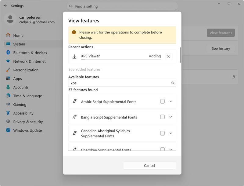 To use the XPS viewer safely and reliably, the most reliable and recommended method is to add it online from the Windows 11 Settings app.